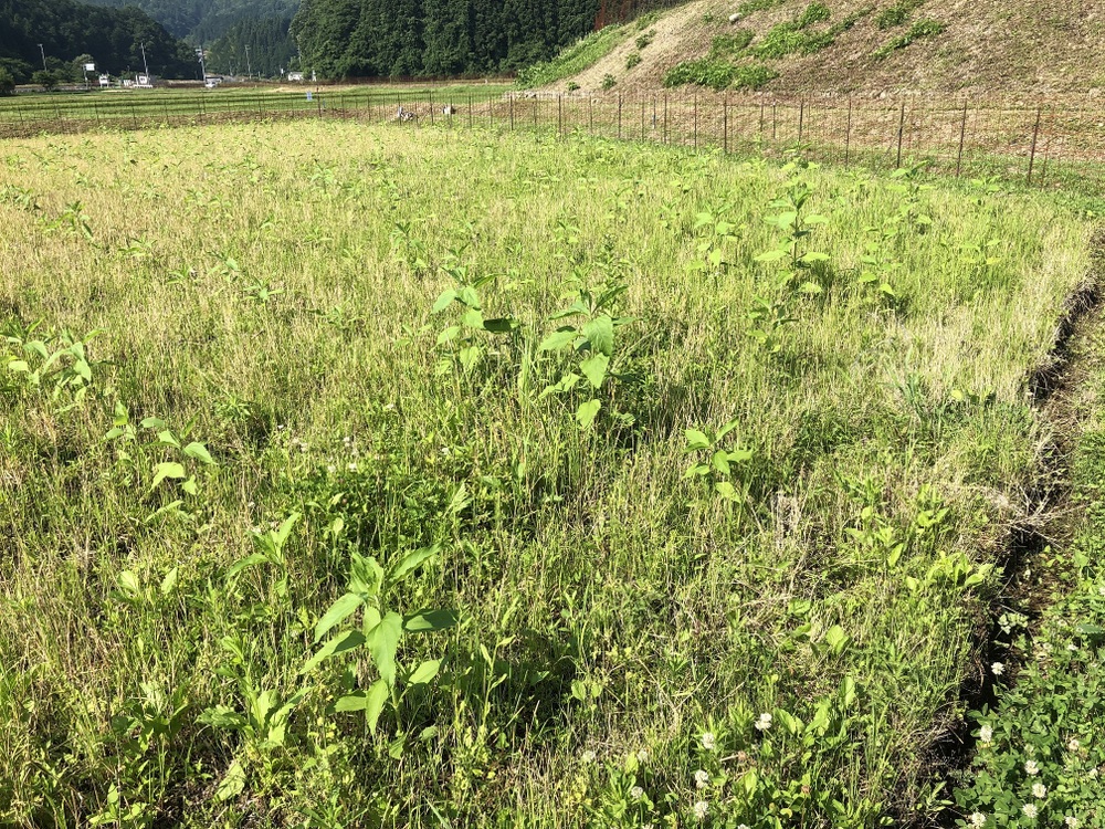 やはり理論どおり!(福岡正信氏が提唱された無除草栽培より)雑草が多いエリアの紫菊芋ほど大きく育ってました。雑草が土中窒素の入れ替えを活発に行い、土壌が活性化されるそうです。また連作障害の緩和にも・・・雑草軍団もガンバレ!