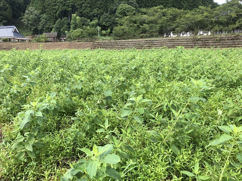 先だっての台風による強風で「紫菊芋」が全部倒れました。倒れても先端部や脇芽は、太陽に向かって垂直に伸び育ってくれるのですが、今回の前線停滞での日照不足。こればかりは如何とも・・・アマテラスに祈るばかり。