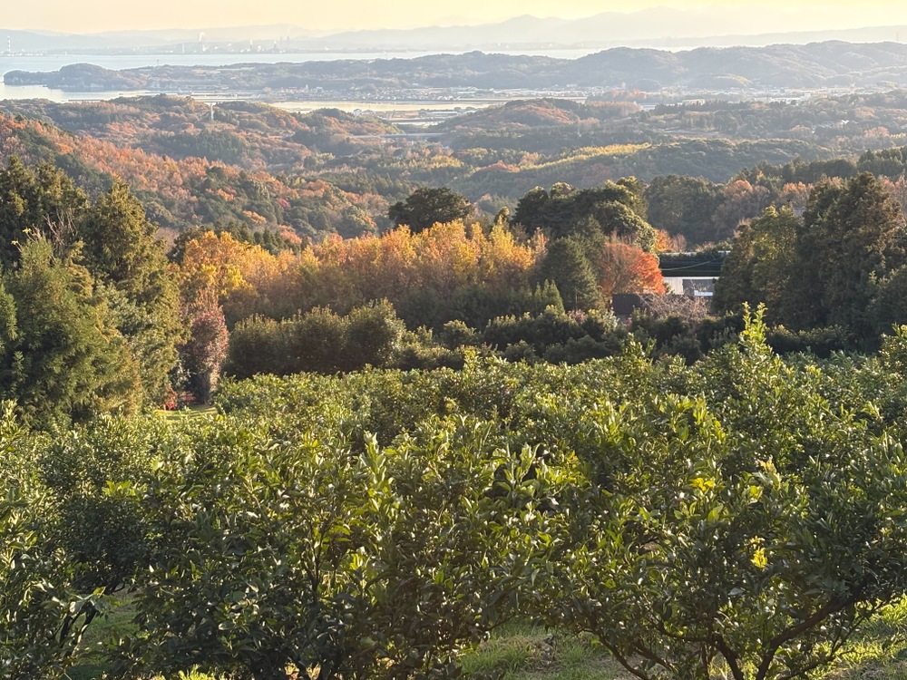 写真は 真っ青になった蜜柑園から見た町の景色です