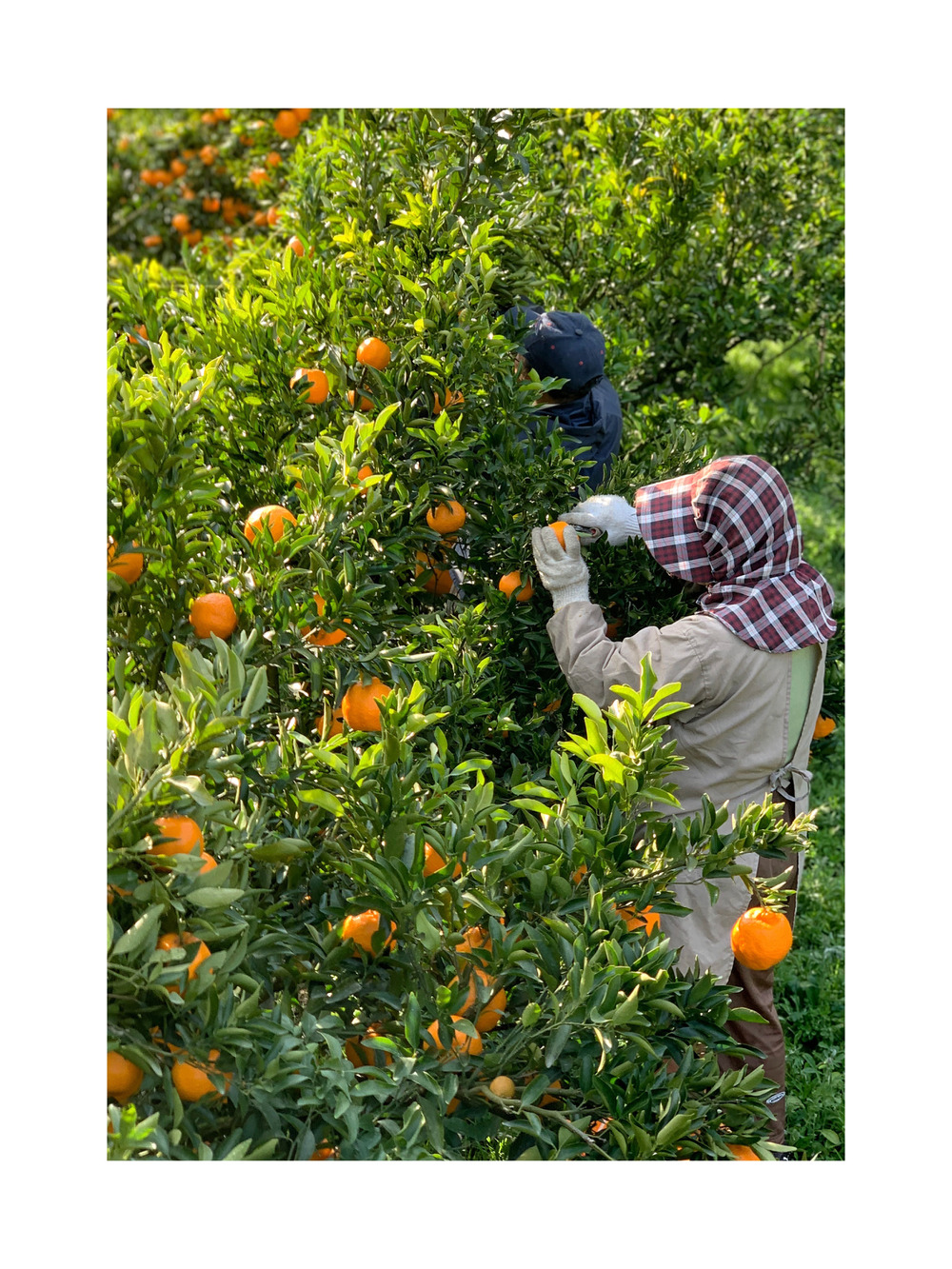 朝から畑に出て、色づきのいい実を一つずつ手で確かめながらパチパチ収穫中です。みかんはデリケートなので、そっと優しく。気を抜くと指に力が入るので、いつも意識しながら作業しています。
