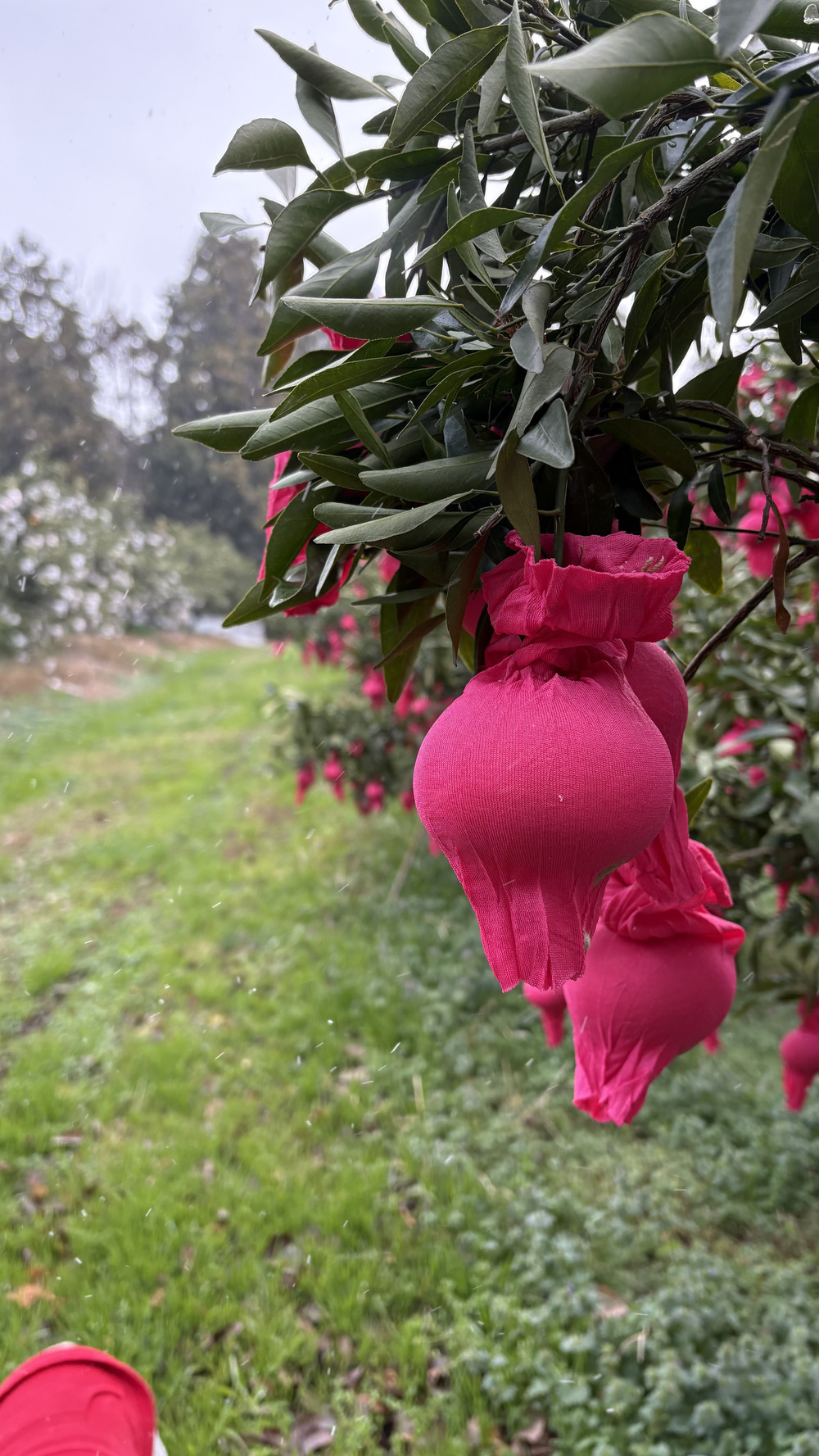 気温がマイナスになると寒さに弱い実を守るため、天気と相談しながらの作業です。