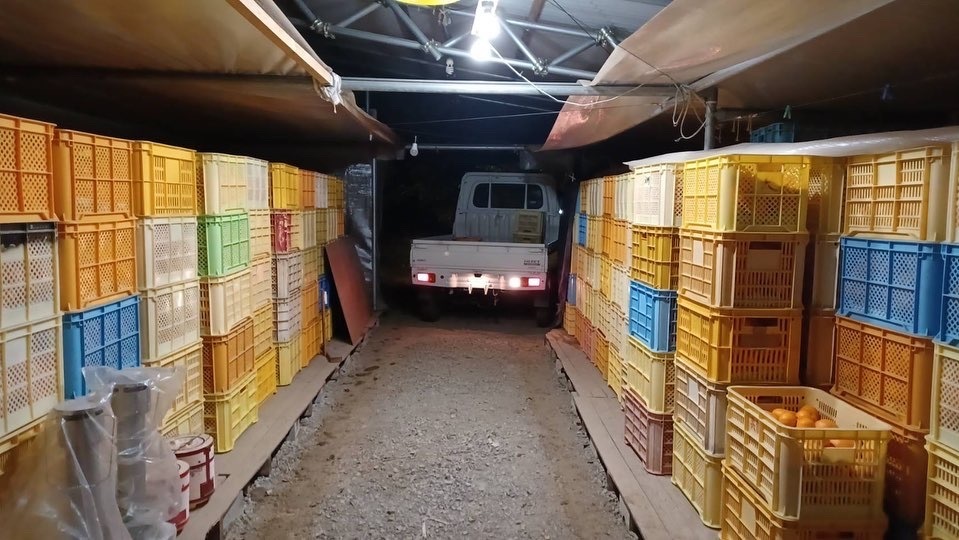 保蔵庫のミカンのため、練炭をたいて凍結対策の様子です。