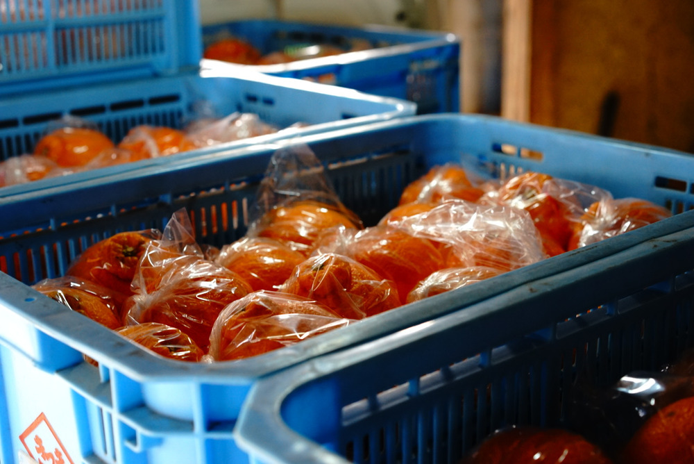 当園の不知火は当園の中でも1番大切に育てている蜜柑です。みかん一つずつを袋詰めし、3ヶ月酸抜くために倉庫で気温管理しながら保管しております。