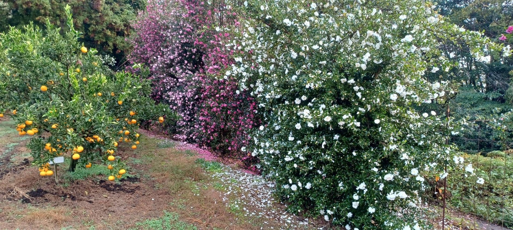 園内に有る山茶花とみかんの写真も載せてます。