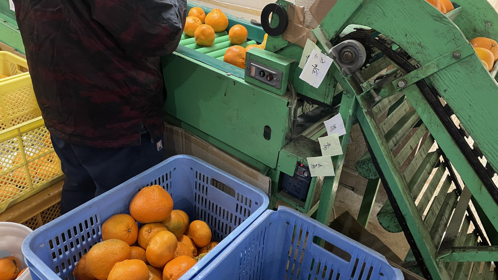 選果をして、傷物やまだ青い物を取り除き、大きさを分けていきます。
