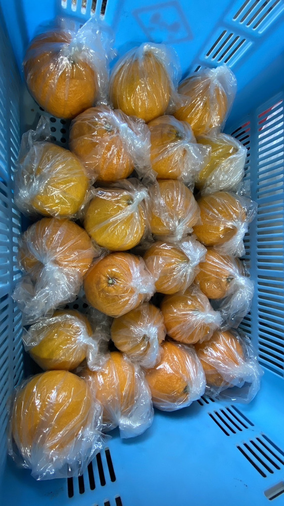不知火の袋詰め作業を開始しました。袋詰めすることによって空気を吸収を抑え長期保存(約2ヶ月ほど保存します)をして酸を抜いていく作業になります。