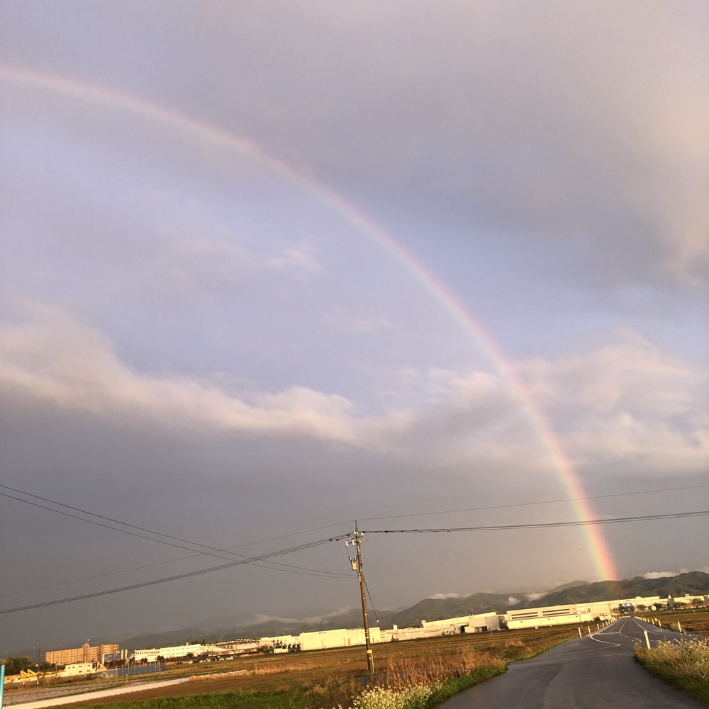 石川県は非常に雨の日が多い地域です!今日も一日ずーっと雨でしたが、夕方にこんな綺麗な虹が出てました^ - ^