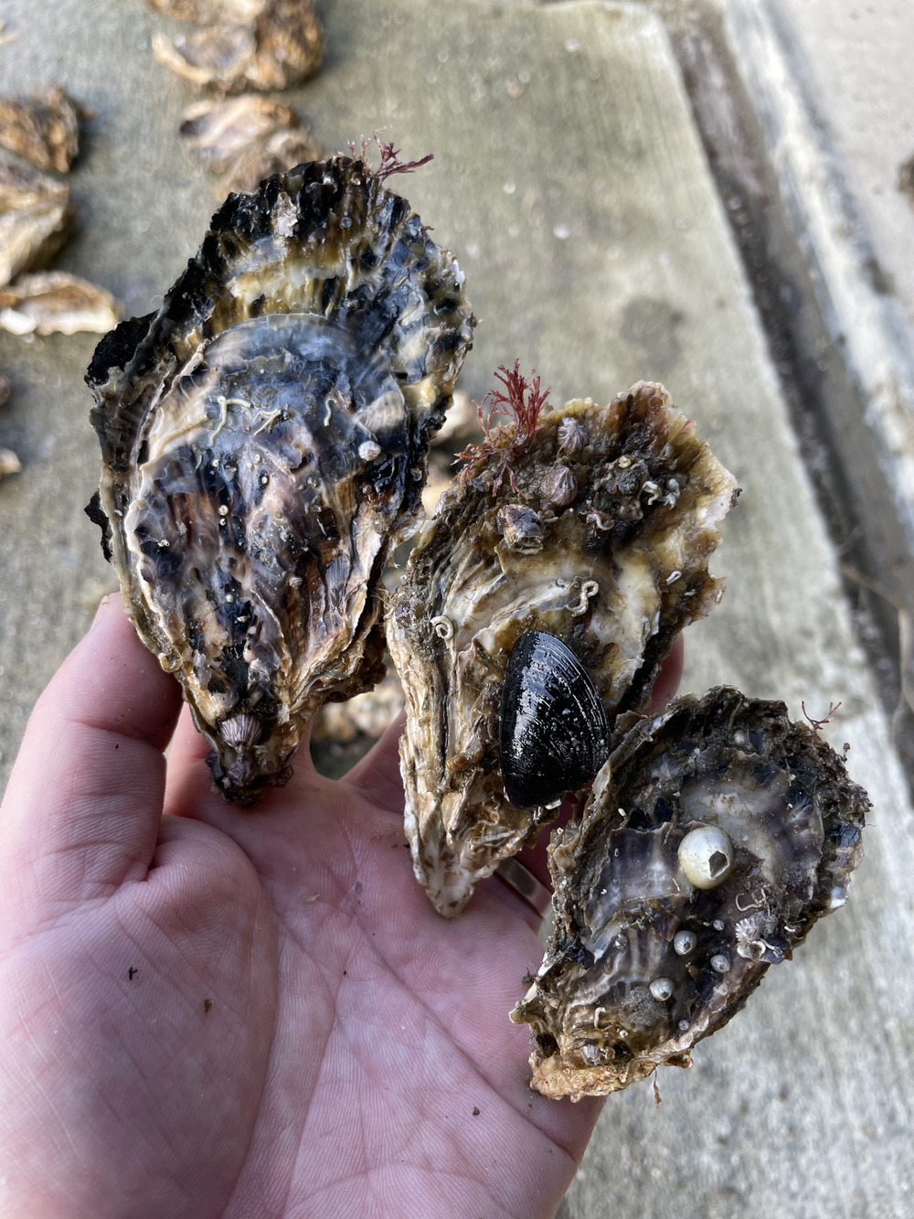 昨年10月に宮城県よりやってきた牡蠣の稚貝もだいぶ大きくなってきました、育ち方も個性があり大きいのや小さいの色々あっておもしろいです。