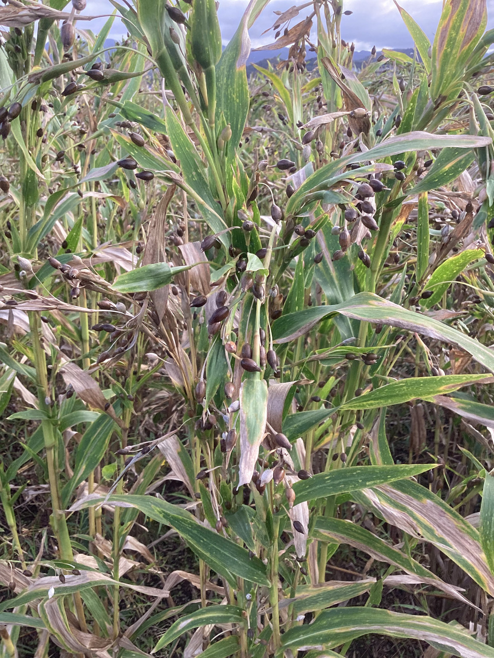 画像は収穫前のはと麦ですが、野鳥が群がっていた様子は記憶にありません。殻が硬いから鳥には好まれないのかと思っていましたが違うのか? 人間が来ても隠れていたのか?、まだ単純に見つかっていないのか?、近辺の鳥には食べれるものと認識されていないのか?
