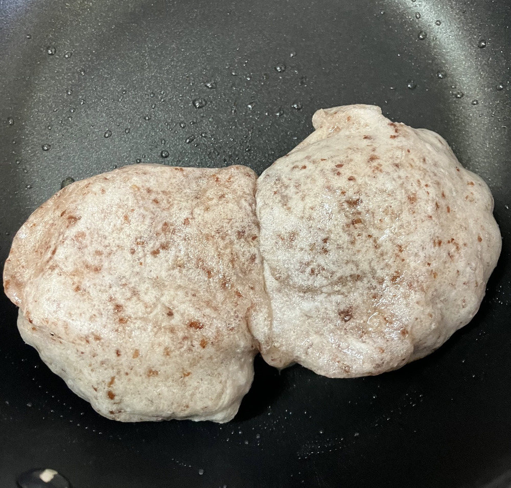 今日は漉し餡を詰めた赤米のお餅をタップリの金ごま油で揚げ焼きです。