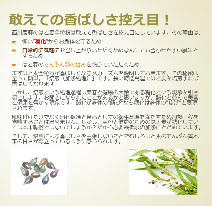 どうぞこれからも自然栽培はと麦粗挽き全粒粉をご愛顧を賜りますようお願い申し上げます。