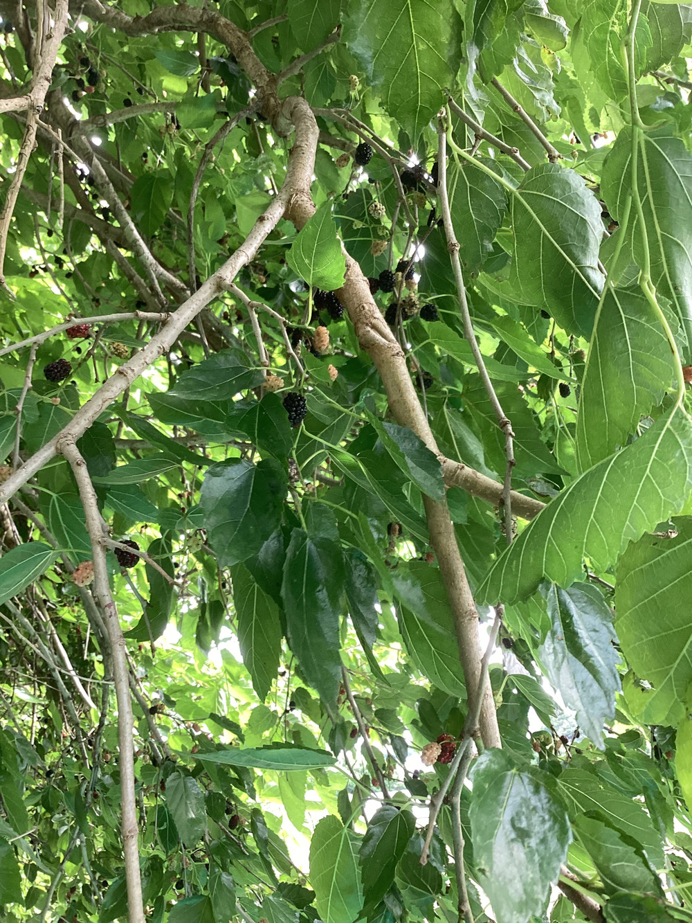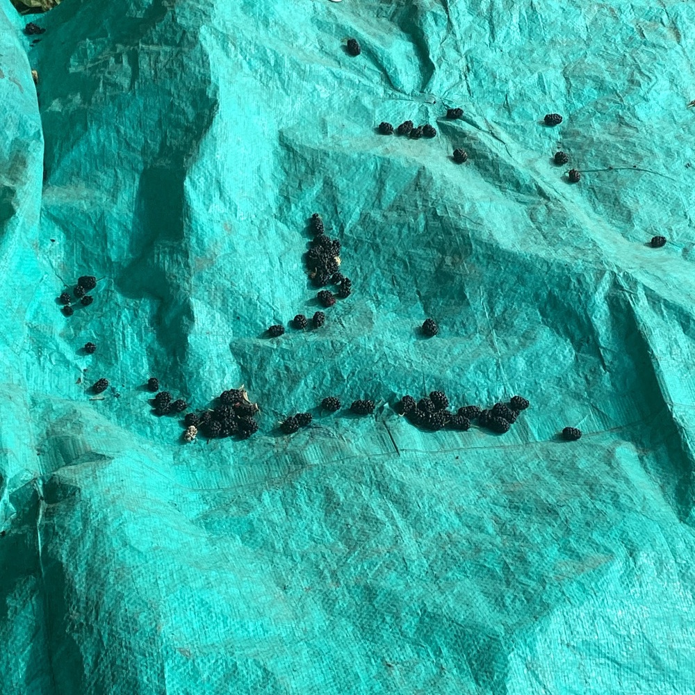 畑にある1本の桑の木と桑の実
