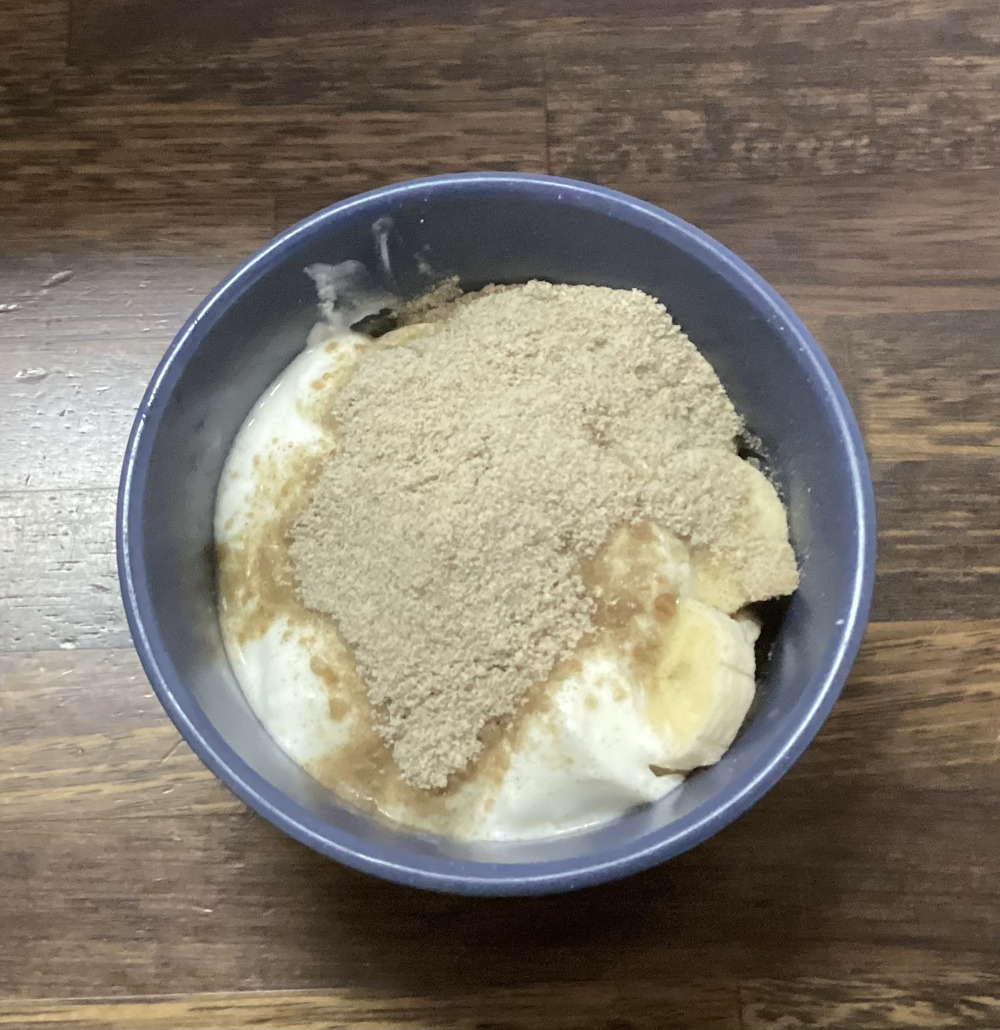 併せて、毎日の習慣にしているバナナ入りヨーグルトはと麦パウダー添え