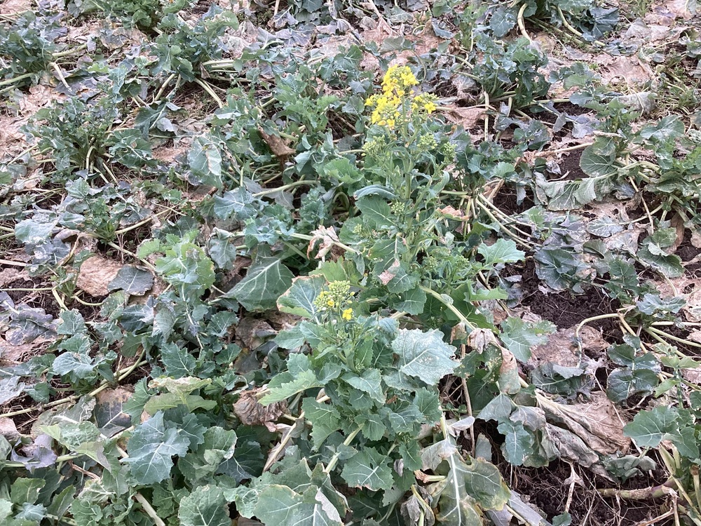 先週、暖かったので春が来たと勘違いしたのか一部の菜種菜の花が開花していました。