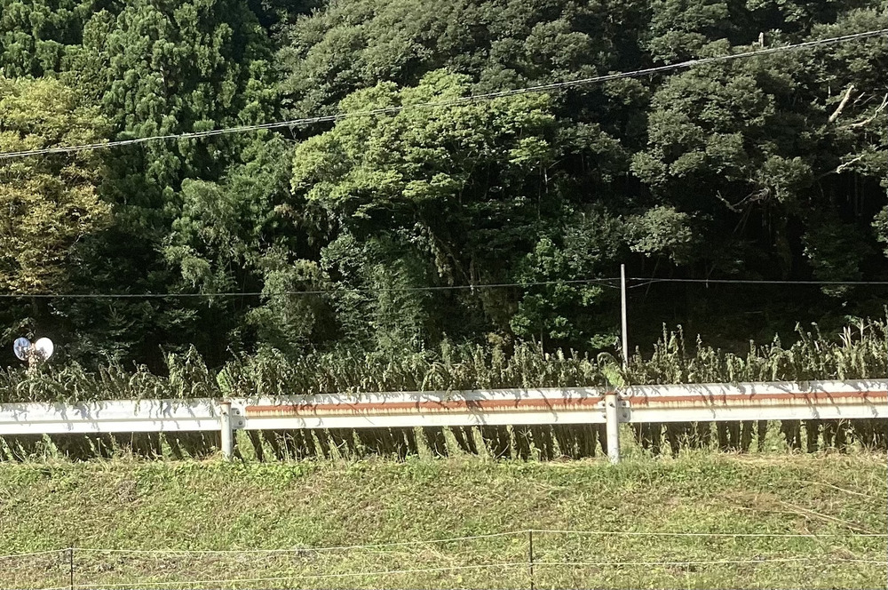 今年もガードレールをちょいと拝借してごまの鞘が開くまで干してます。