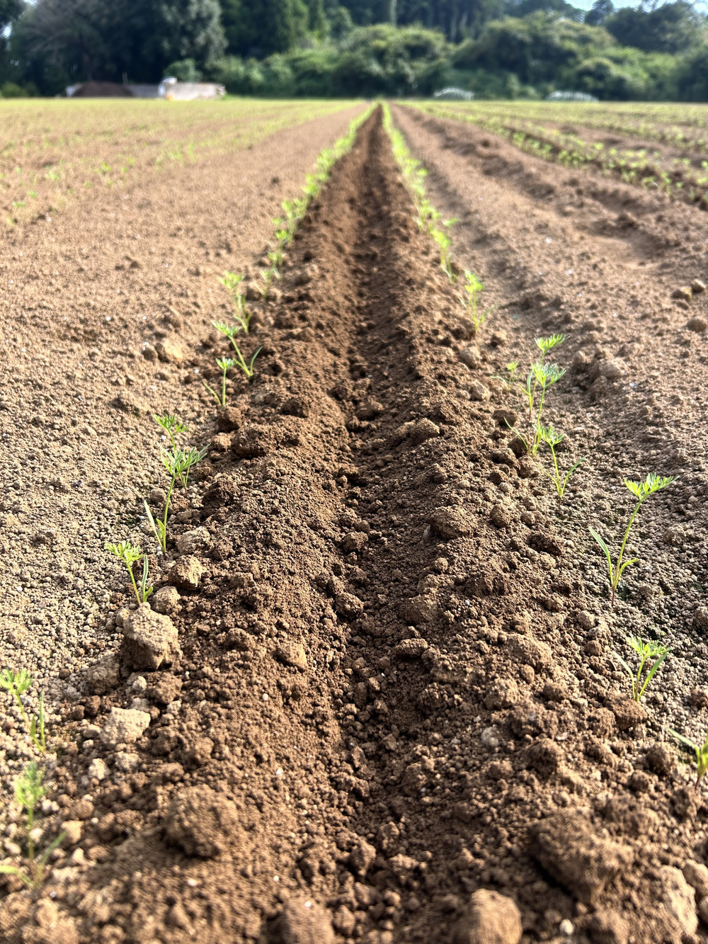 発芽から13日程経過した🥕はまだ未熟なので大きい雨や風が吹くと倒れてしまいます😅