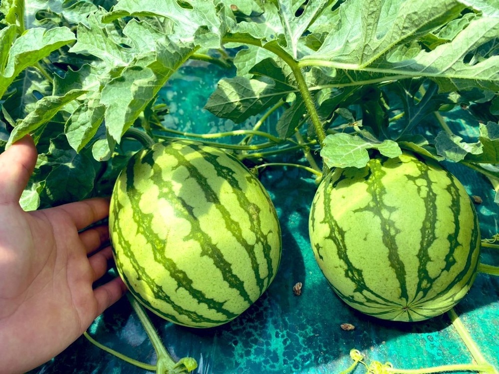 2枚目の写真のように2玉に絞り栄養を集中するための作業です🍉