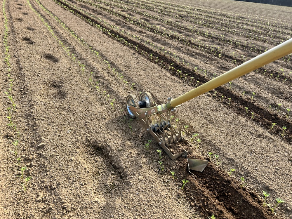 土寄せして倒れを防ぐと同時に除草作業もしています☺️