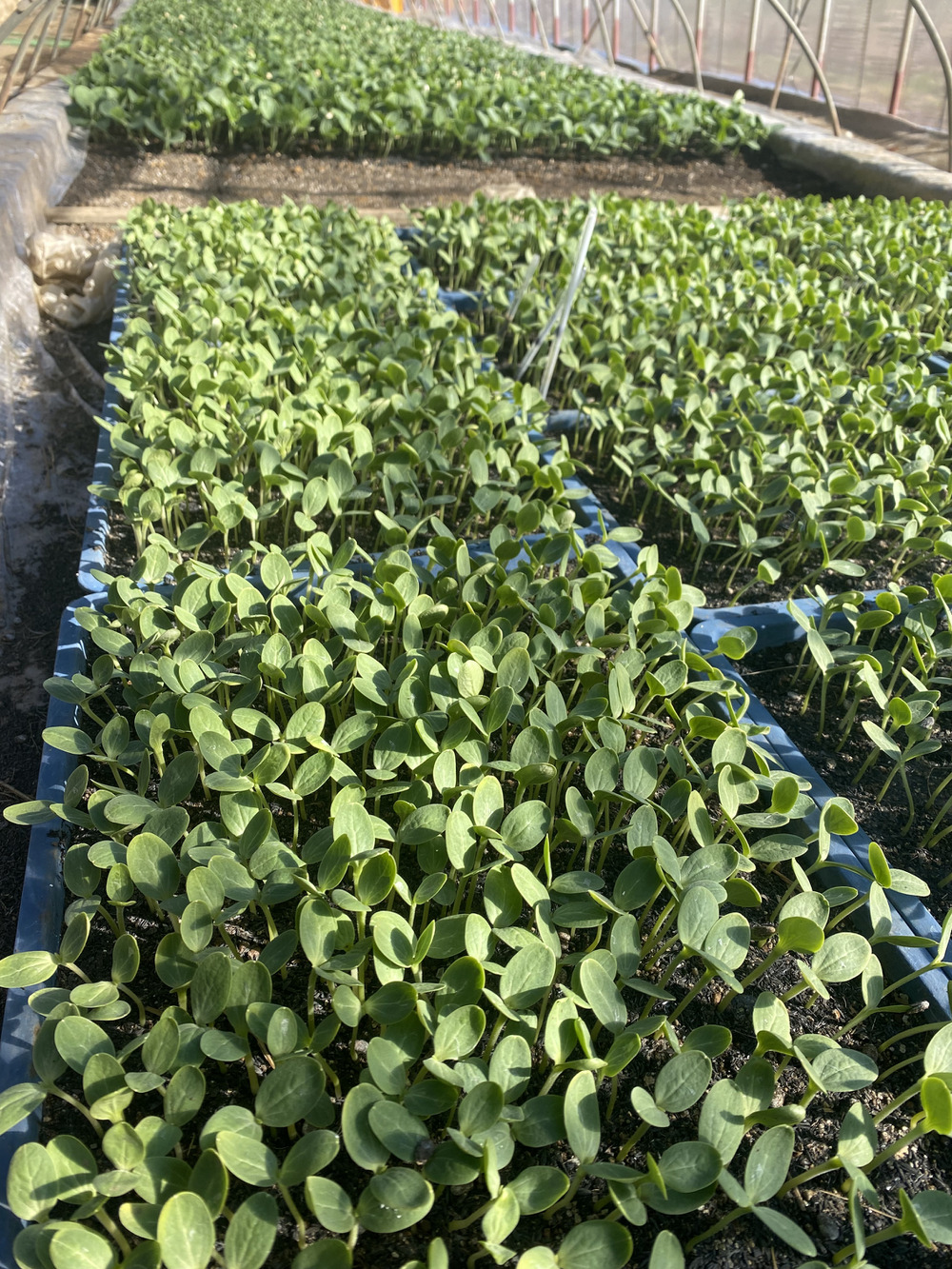 奥にあるカボチャ🎃と手前のスイカ🍉をくっ付けて苗床に移します😌