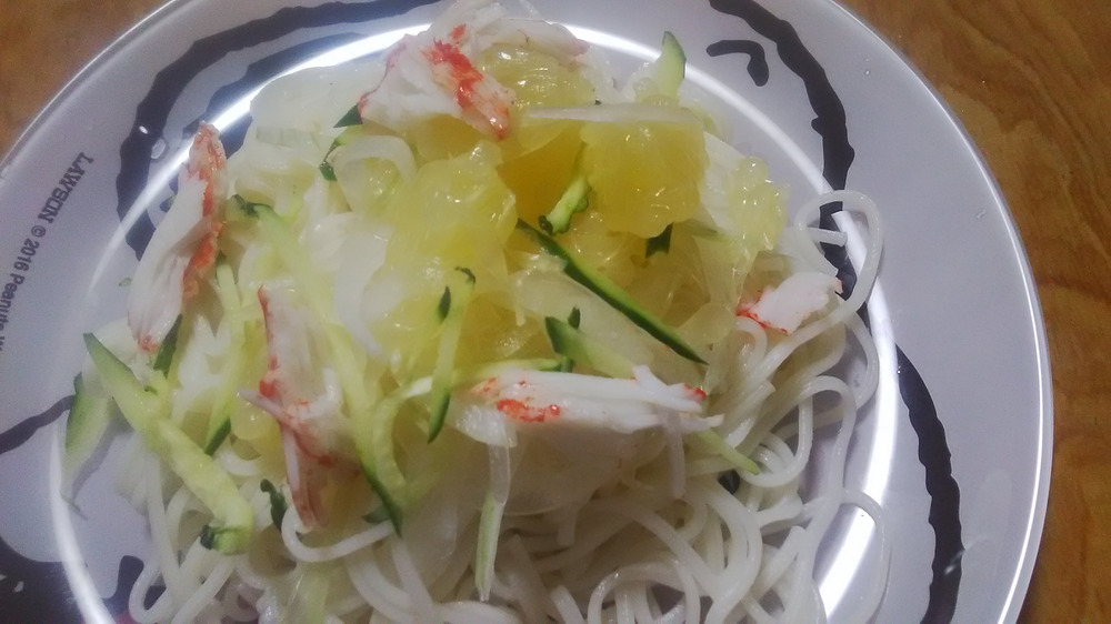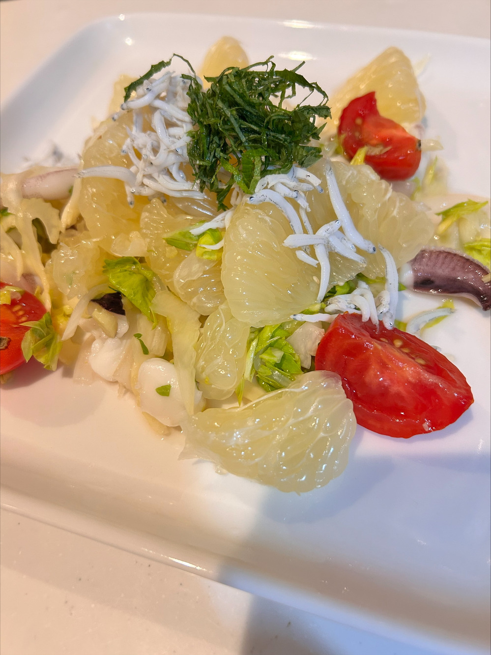 玉ねぎとイエローポメロをまぜて冷蔵庫で冷やしておくと色々使えます。