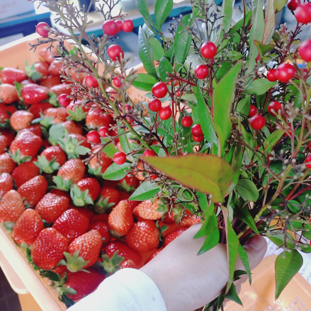 今日は県内のホテルへの発送便(私のいちごはミシュラン星取得のホテルにも納めております!)にナンテンをつけました。