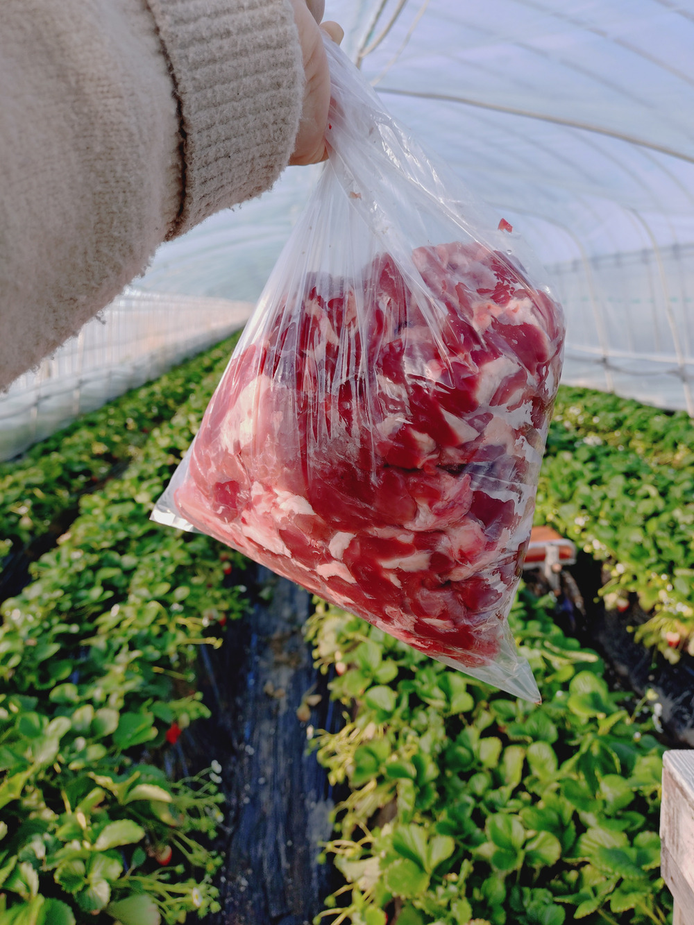 今日はいちごの収穫お休みの日ですので忙しくなく、背中は日向ぼっこしながら箱折りや事務作業の日です。久々にお腹いっぱいお昼ご飯を食べて眠くなっておりました😂