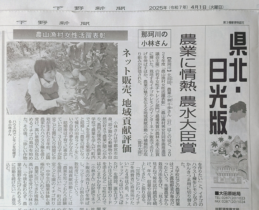 あと、今日は地元新聞に先日の受賞のことを記事として掲載いただきました。
