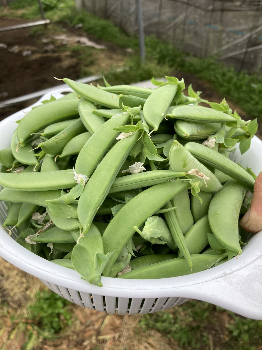 スナップエンドウが少しづつ収穫、出荷できるようになりました。