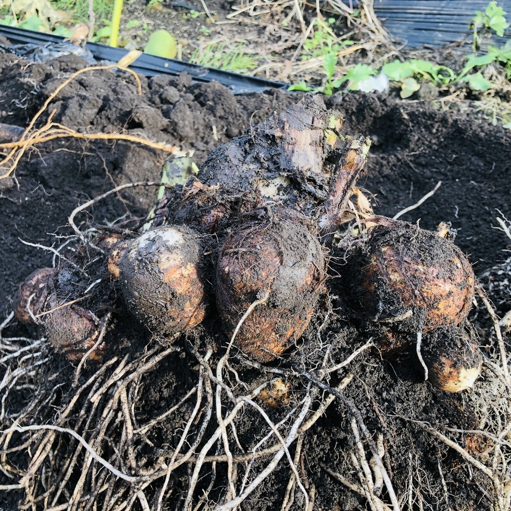 大きな傘のような葉は、畝の高さも入れると2メートルにも成長🌱