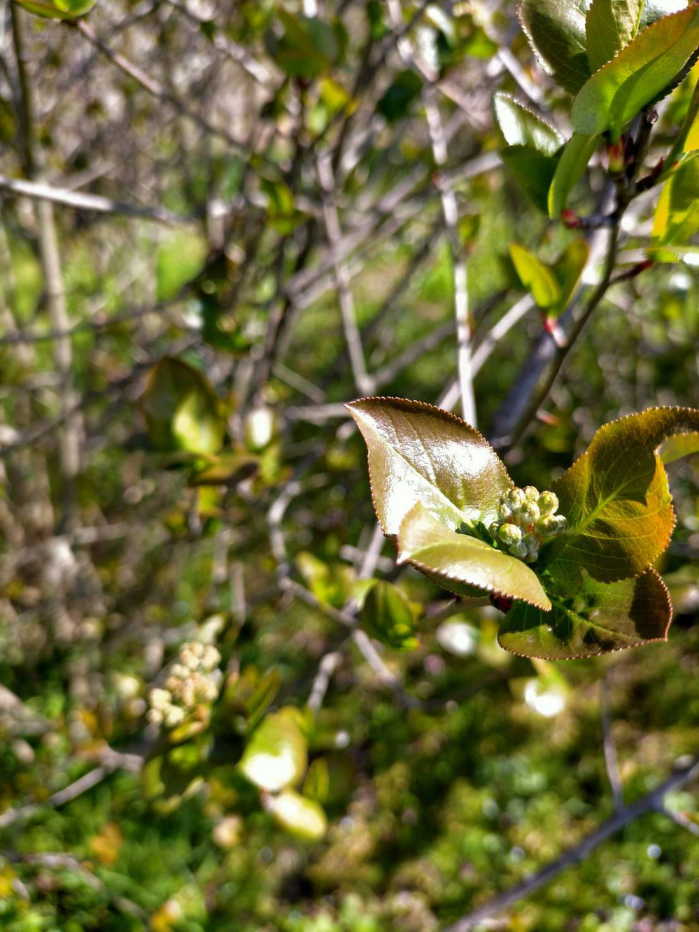 今年も2月に大雪が降ったのですが、アロニアの木々は倒れることなく、葉っぱが生い茂ってきて芽が出てきた木もありました。昨秋に剪定や間引きを少しばかりしたのですが、剪定不足で樹高も高くなり込み合ってはおりますが、今夏もたくさんの実を付けてくれることを期待しています。