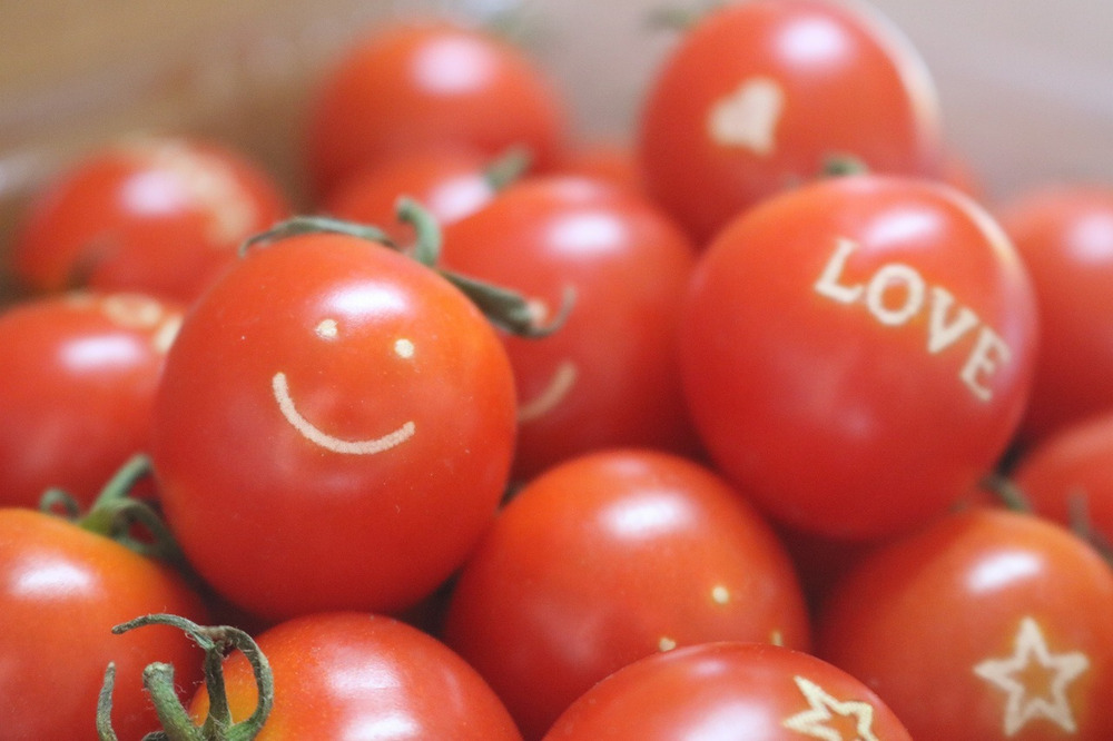 まるたか農園では、世界で唯一、トマトにマークを付けた「ハピフルとまと」を生産販売をしています。