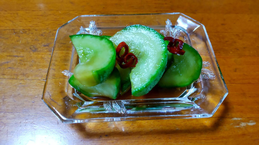 摘果メロンの漬物🍈鷹の爪を入れるとちょっピリ辛。厚めに切ると口のなかでバリバリ歯ごたえよく、白いごはんとの相性バツグンです🙂
