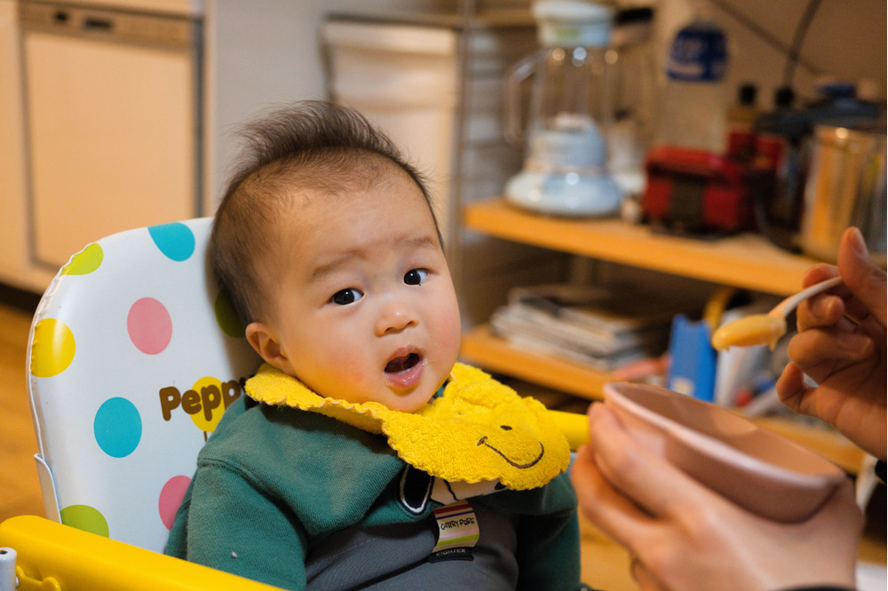 立派な前歯も二本生えて、離乳食にも慣れてきました。