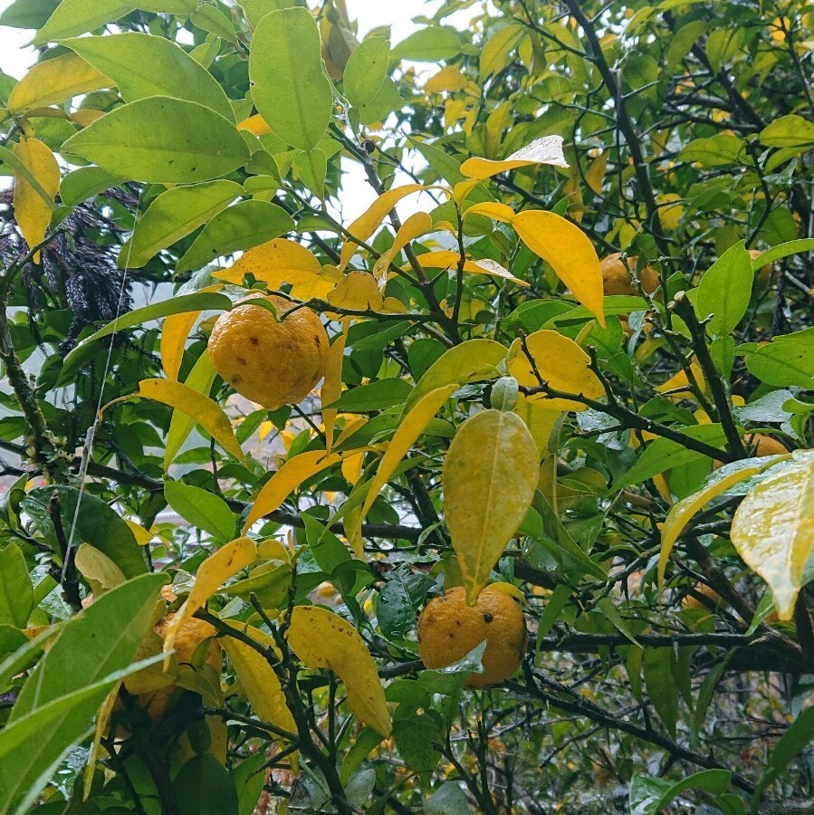 してやんちゃ坊主みたいですが、農薬などは使っておりません、樹齢50年のゆずの木です。