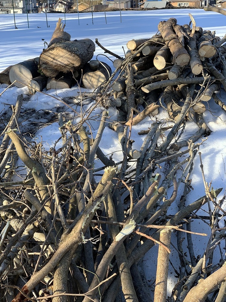冬の晴れた日を見つけて、薪ストーブの燃料にする為の薪を作るために山の木を伐採しました。