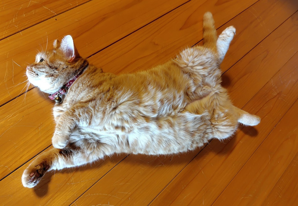 よし!ここは、みかんとペコちゃんに習って、ふにゃっと、だら〜んとしてみようっと。