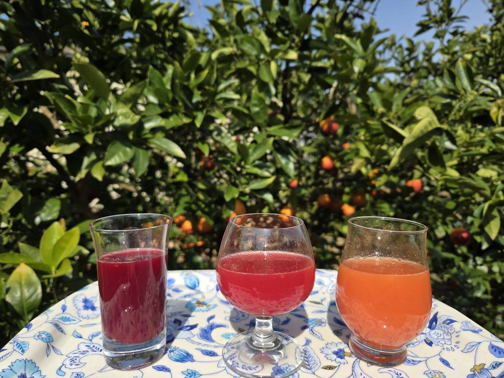 ジュースの写真、真ん中はモロ&タロッコのミックスですか?