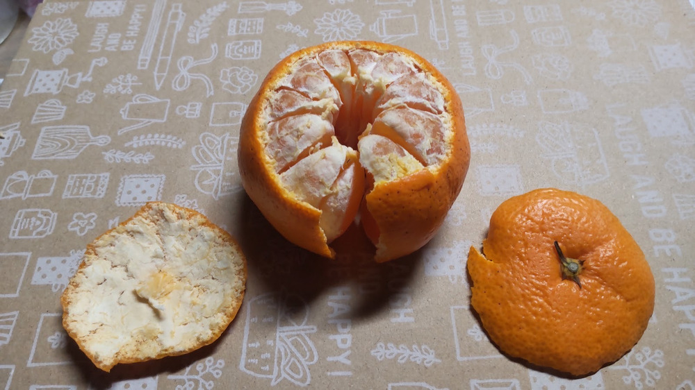 農林水産省の公式ツイッターで「ベルト状に房を並べる」というみかんの剥き方が紹介されていました。「キャタピラむき」とも呼ばれるそうです。おもしろそうだったので試してみました。非常に簡単で、きれいな形に剥けます。食べ終わった後の皮もコンパクトに捨てられます。