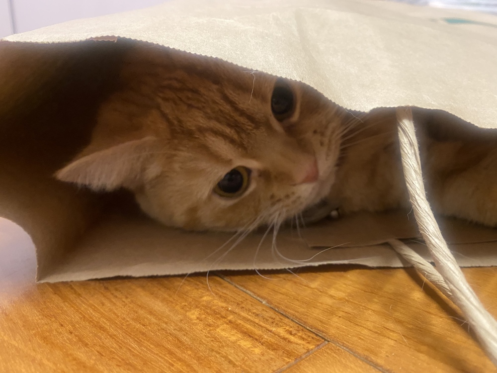 これは以前に能登ヘ旅行に行った際にたまたま立ち寄った珠洲神社でいただいたものです。猫型の猫用のお守りです。(ちなみに犬用のお守りもありました。)ペコちゃんの前のネコは「スズちゃん」という名前でした。「珠洲神社」と「スズちゃん」なので、これも何かの縁かと思いました。当時スズちゃんは18年も生きていてかなり弱っていたので、健康祈願もしてきました。そのスズちゃんの後に我が家にやって来たペコちゃんにそのお守りを引き継いでもらっています。そのお守りには、「健康長寿」「交通安全」と書かれています。何も知らずにぶら下げて飛び回っているペコちゃんですが、お陰でペコちゃんは元気過ぎるくらい元気です。