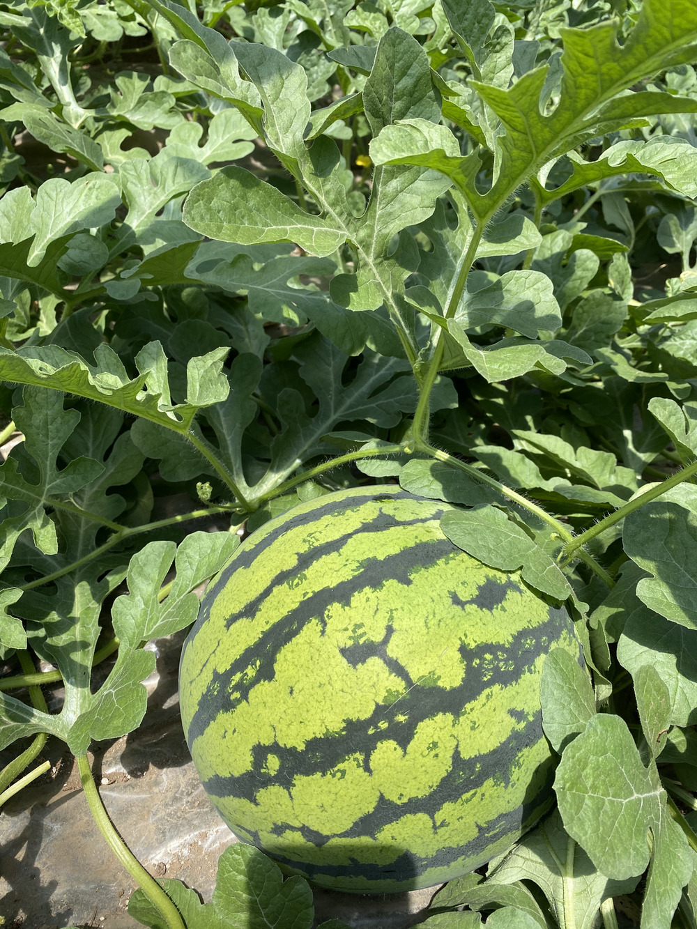 紅まくらはその名の通り枕のような形をした楕円形の大玉すいかです😊