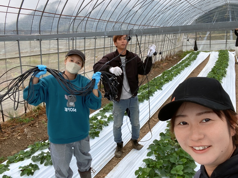 此方でも夜イチゴ🍓ハウスに灯りがつくようになりました😊
