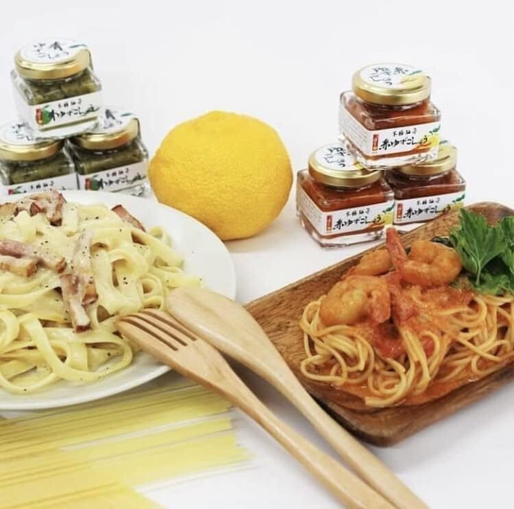 お鍋の薬味にも、パスタなどのソースのアクセントとしてもお使いいただけます。青ゆずこしょうと食べ比べするのもおすすめです。