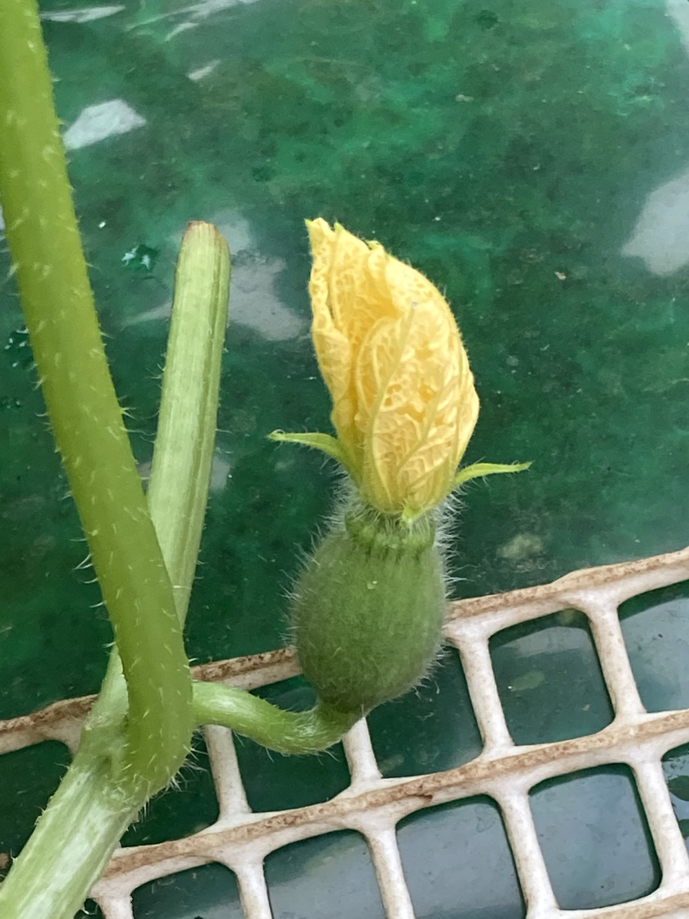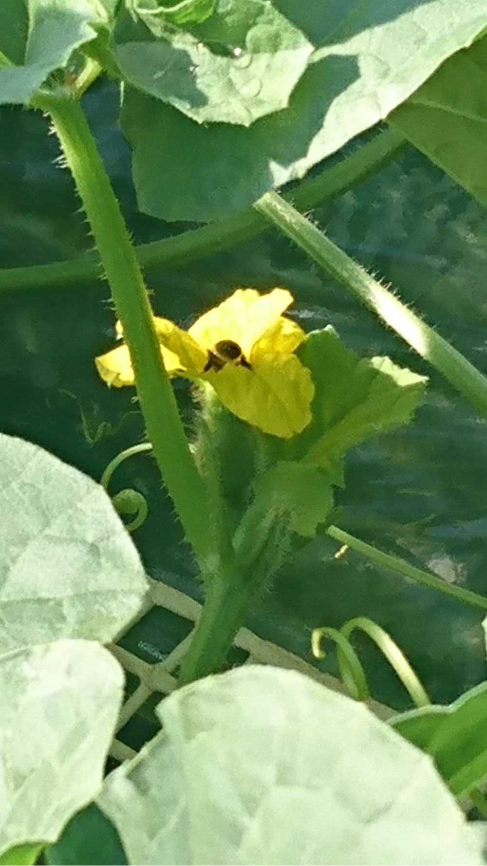 メロンがすくすく成長して、蜜蜂🐝が入りました。