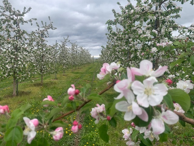 綺麗なリンゴの花の写真ありがとうございます!とても広い農園!満開のリンゴの花の良い香りがただよってくるようです。