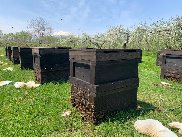 岩木山 神々しいですね。拝みたくなります。りんごの花が満開で蜜蜂も喜んでいますね。お体に気をつけて、収穫まで頑張ってください😊