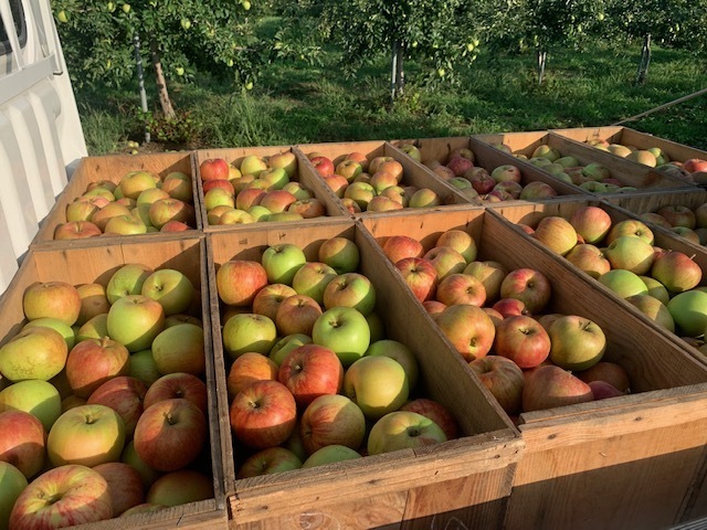 写真②:軽トラに積まれた、「加工用つがる(日焼け果や着色不良果)」
