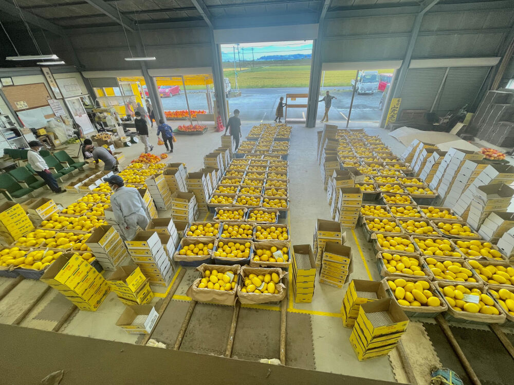 板井園芸組合ではメロンを中身の確認をデコピンして選果しております。