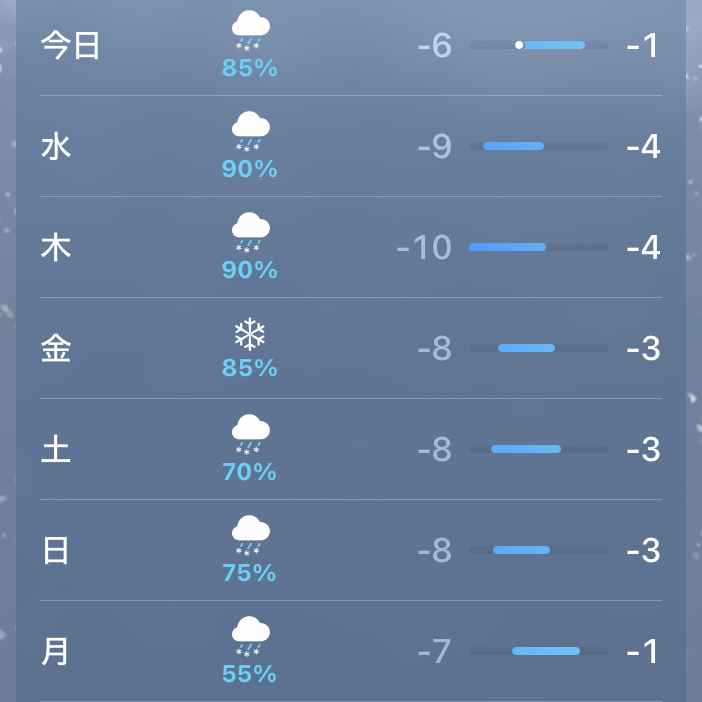 最高気温がマイナス1度、体感温度がマイナス16度!