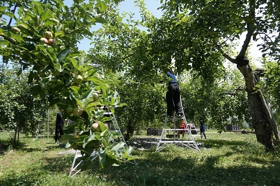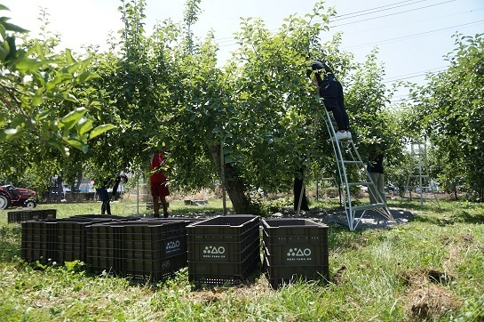 もりやま園では6月からりんごの摘果(てきか)作業が行われていますが、本日7/1からはこの作業で摘まれる未熟りんご(もりやま園では”テキカカ”と名付けています)の収穫作業が始まりました!