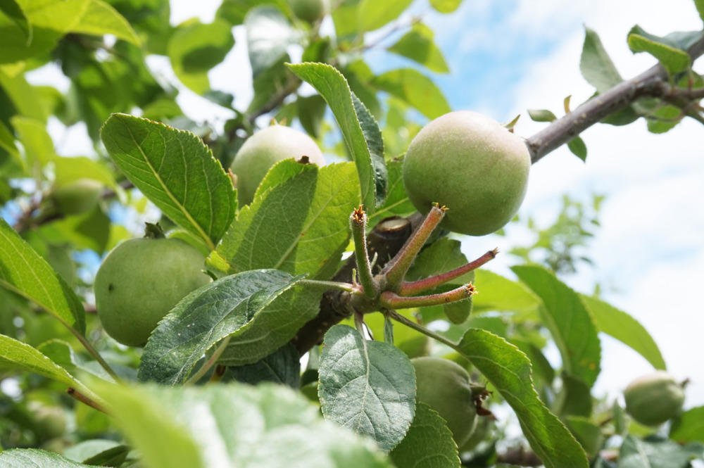 7月から2回目の摘果作業でシードルやソーダの原料となる摘果果="テキカカ”を収穫します!!